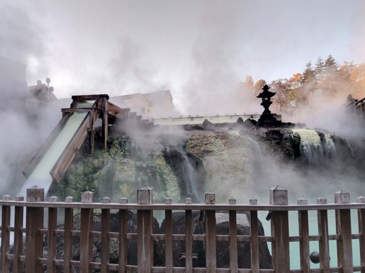 - 朝の湯畑は湯気が濃く、人が少なくて写真が撮りやすい